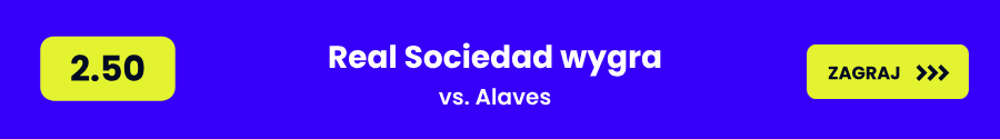 - 1X2: zwycięstwo Alaves, remis, zwycięstwo Realu Sociedad — kursy wskazują na delikatne faworyzowanie gości.