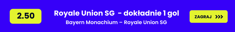 Royale Union SG – dokładnie 1 gol (kurs 2.50) – Belgijski zespół może wykorzystać moment dekoncentracji Bayernu przy wysokim prowadzeniu lub stałym fragmencie gry, co przy dominacji gospodarzy wciąż zostawia przestrzeń na pojedyncze trafienie gości. Jednocześnie statystyki Unionu SG na wyjazdach oraz kontrola tempa gry przez Bayern sprawiają, że scenariusz z więcej niż jednym golem Belgów pozostaje mało prawdopodobny, co podnosi ryzyko, ale i wartość tego typu.