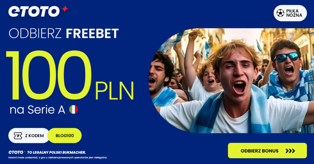 Zarejestruj się z kodem BLOG100, wpłać min. 50 PLN i odbierz FREEBET 100 złotych na Serie A!