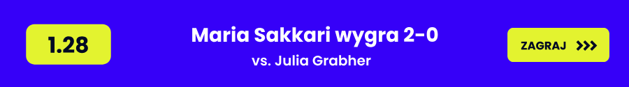 - Typ 3 – Sakkari -1.5 seta — kurs 1.30 (dla graczy oczekujących przekonującego triumfu Sakkari)