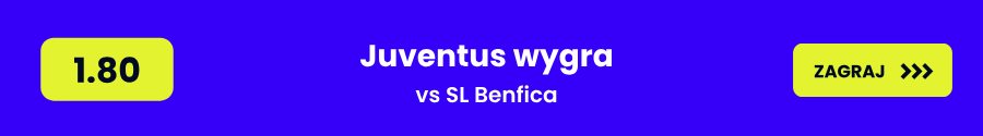 Kto wygra mecz Juventus – SL Benfica? Najlepsze typy bukmacherskie wskazują, że faworytem jest Juventus, a kurs na jego zwycięstwo wynosi 1.80.