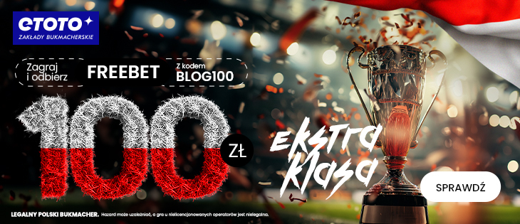 Zarejestruj się z kodem BLOG100, wpłać min. 50 PLN i odbierz darmowy zakład na Ekstraklasę o wartości 100 złotych!