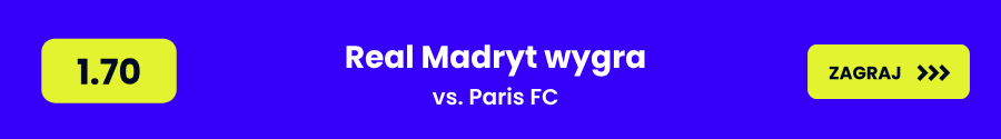- Wynik 1X2: Paris FC 4.30 / Remis 3.50 / Real Madryt 1.70