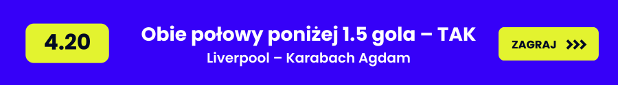 - Obie połowy poniżej 1.5 gola – TAK (4.20) – Liverpool może kontrolować tempo spotkania po szybkim objęciu prowadzenia, ograniczając ryzyko i rotując składem. Karabach nastawi się defensywnie, co może ograniczyć liczbę bramek w poszczególnych połowach mimo wyraźnej przewagi gospodarzy.