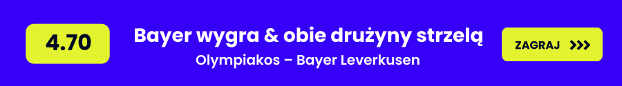 - Bayer Leverkusen wygra & obie drużyny strzelą – TAK (kurs 4.70) – ten scenariusz zakłada zwycięstwo zespołu z Niemiec przy jednoczesnym golu Olympiakosu, co znajduje uzasadnienie w ofensywnym stylu gry Leverkusen oraz ich problemach z zachowaniem czystego konta na wyjazdach. Olympiakos na własnym stadionie potrafi wykorzystać stałe fragmenty gry i momenty dekoncentracji rywala, co zwiększa szansę na trafienie gospodarzy nawet w przegranym meczu.