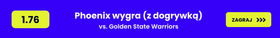 - 1. połowa – handicap: Phoenix -3.5 kurs 2.27, Golden State +3.5 kurs 1.59