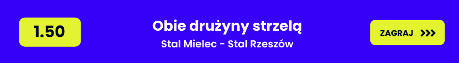 Biorąc pod uwagę, że obie ekipy tracą bardzo dużo bramek – Mielec stracił 52, Rzeszów 42 – i że ponad 70% meczów gospodarzy kończy się wynikiem powyżej 2.5 gola, trudno tu liczyć na szczelną defensywę z którejkolwiek strony. Do tego Stal Rzeszów w 20 z 27 meczów uczestniczyła w spotkaniach, gdzie strzelały oba zespoły. Typ na obie drużyny strzelą wydaje się tu najbardziej logicznym wyborem – kurs 1.50 jest uczciwy przy takiej historii obu stron.