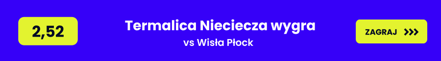 Kursy bukmacherskie pokazują wyrównaną rywalizację z niewielką przewagą dla gości. Termalica Nieciecza jako gospodarz wyceniona jest na 2,52, Wisła Płock na 2,77, a remis dostępny jest po 3,43.