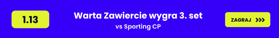 - Warta Zawiercie wygra 3. set (kurs 1.15) – Sporting przegrywa końcówki spotkań wyraźnie